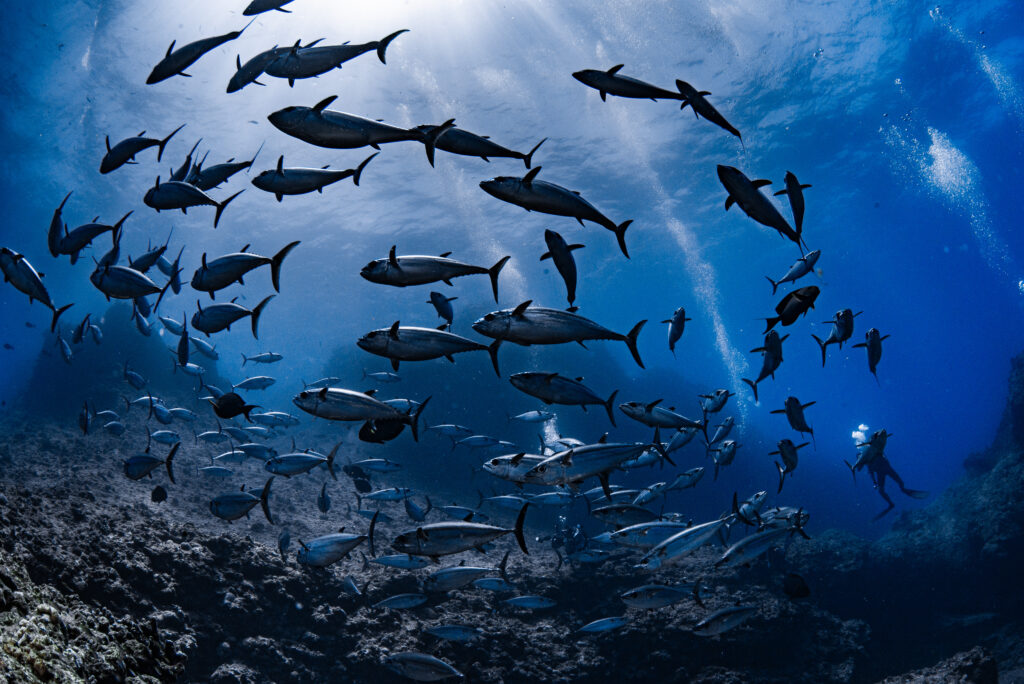 ギンガメアジ、イソマグロ、ナポレオン、カンムリブダイ、カマス、ハンマー、そしてジンベエザメなど大物天国、群れ天国!